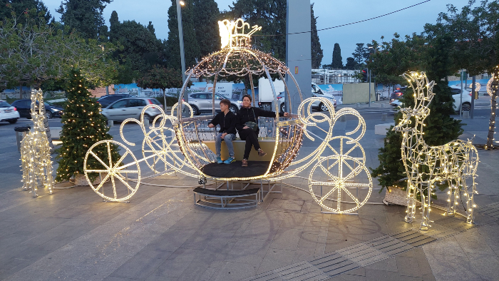 Već dolaskom na šetnicu smo bili oduševljeni jer je bilo toplo i mirno. Istovremeno je u Zagrebu počeo padati snijeg i minus temperature. Ljudi su se kupali u moru i nas je već svrbilo da se i mi okupamo. Prošetali smo duž cijele šetnice, pored restorana i suvenirnica gdje smo odmah i zavirili u njih te obavili prvi shopping jer kad ti se nešto svidi kupi odmah 😊.