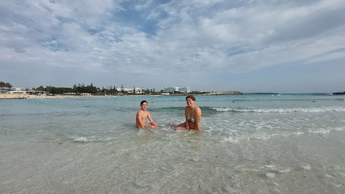 A onda je slijedio naš hit dana i kupanje na plaži Nissi (Aya Napa). Predivna plaža koja je ljeti valjda ko mravinjak, zato je sad bila idealna da doživimo njezinu ljepotu. S jedne strane su bili valovi a nakon pješčanog spruda je bilo mirno pa smo se tamo okupali. I nismo bili jedini, bilo je dosta kupača. More je bilo 19 stupnjeva, a zrak 18. Iako sam mislila da ću se smrznuti, ako ne u moru onda kad izađem, samu sebe sam iznenadila da mi uopće vani nije bilo hladno. Ok, more nije moje idealne temperature. Opće je poznato da volim topla mora, ali ovo mi je bilo ok. A i za zdravlje je valjda dobro došlo 😊.